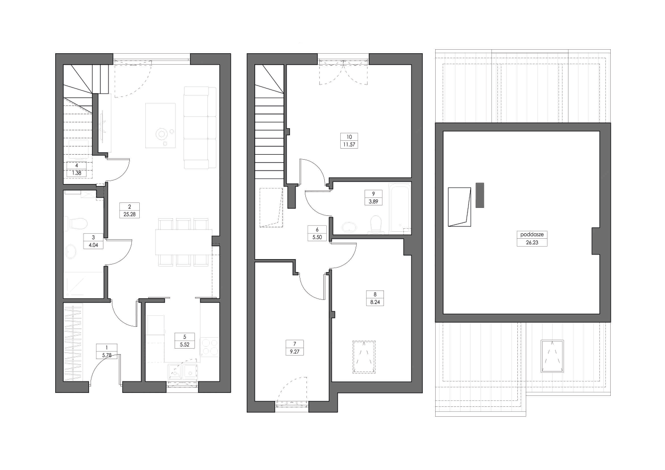 To oferta dla osób, które cenią wygodę i dobre inwestycje. Zaledwie kilka minut dzieli Cię od szkoły, przedszkola, sklepu czy stacji PKP. Każdy dom ma ponad 80 m² powierzchni użytkowej i poddasze gotowe do adaptacji. Deweloperski standard pozwala Ci wejść i wykończyć przestrzeń zgodnie z własną wizją – bez kompromisów.